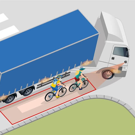 Zusätzliche Sicherheit für Fußgänger und Radfahrer. Wir rüsten Radarsysteme nach, die den toten Winkel beim Abbiegen überwachen und den Fahrer aktiv warnen.